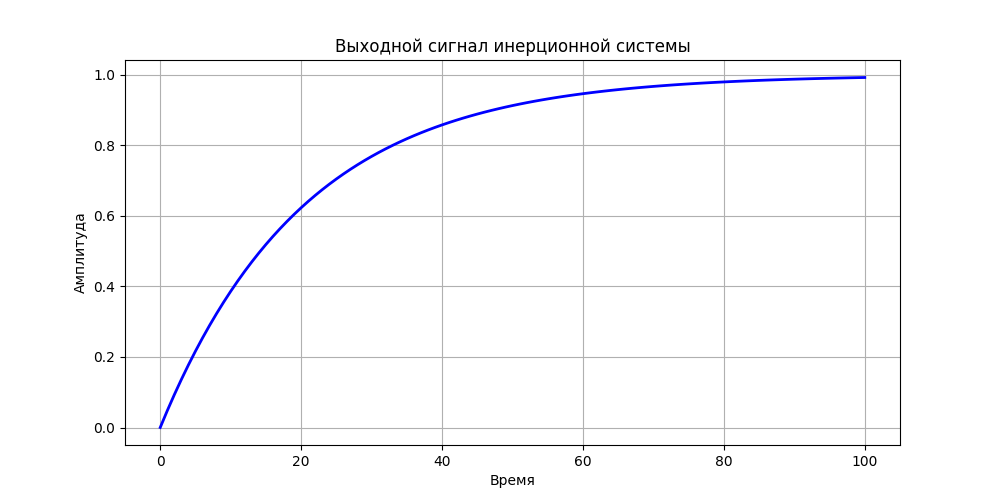 Text(0.5, 1.0, 'Выходной сигнал инерционной системы')