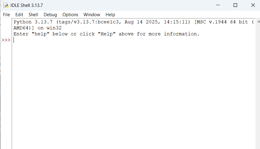 С помощью File/New File открыла окно текстового редактора оболочки IDLE.