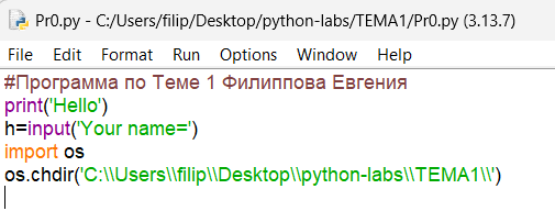 Сохранила программный файл Pr0.py в рабочем каталоге.
