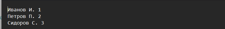 sps3=[['Иванов И.',1],['Петров П.',2],['Сидоров С.',3]]