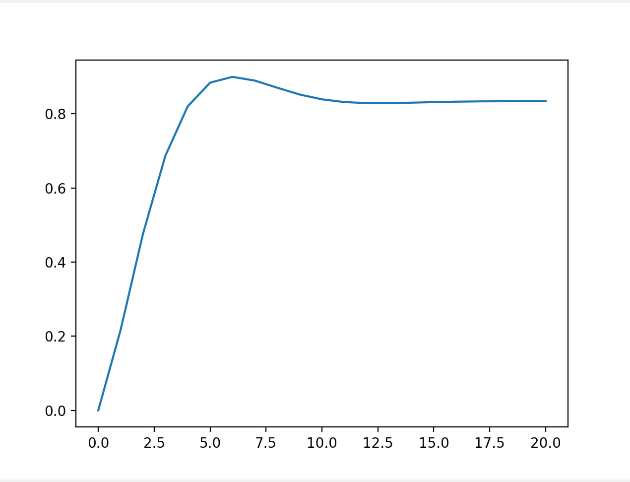 xx=[0]+[1]*20 #Входной сигнал – «ступенька»