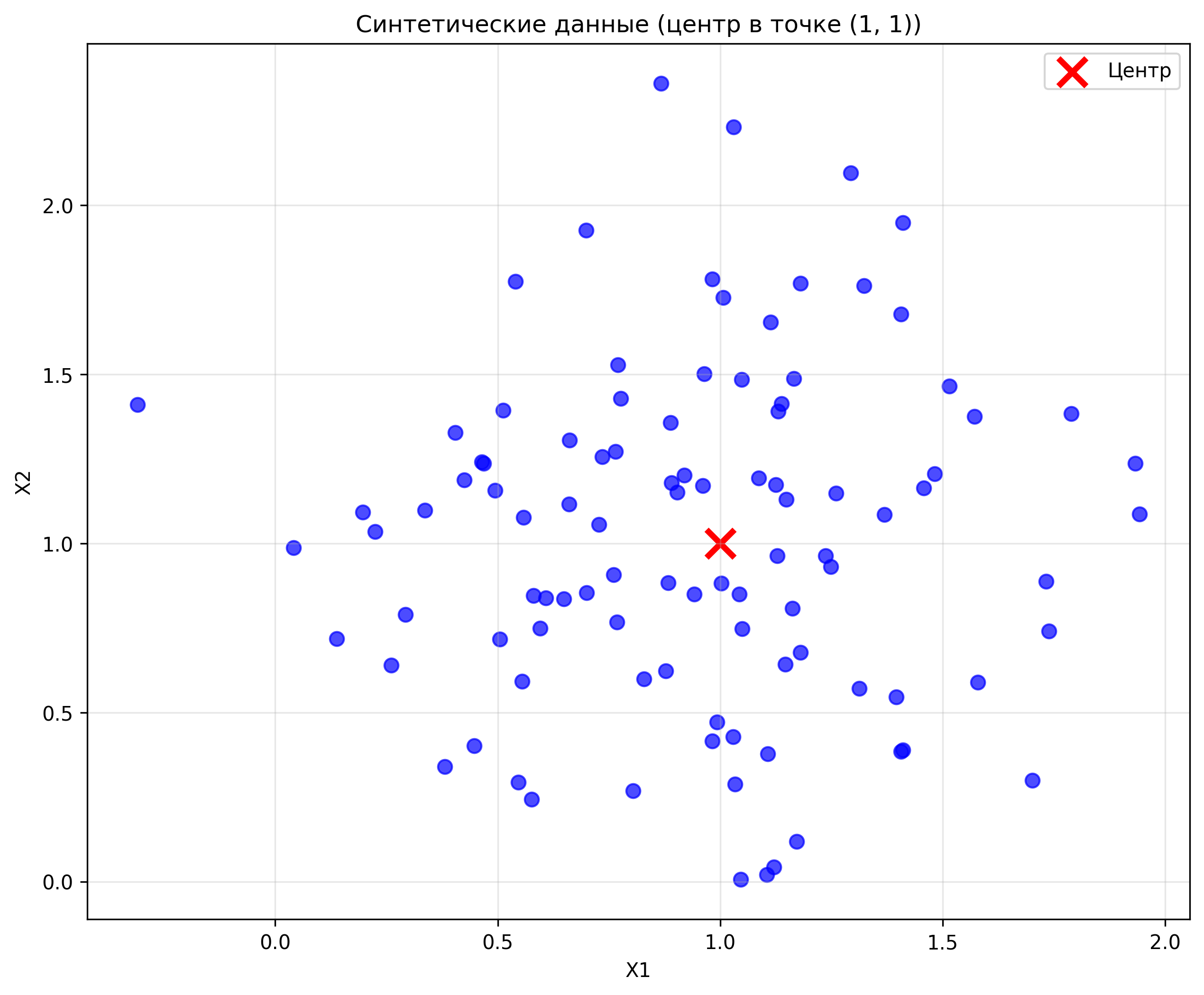 # Генерируем данные с центром в точке (1, 1)